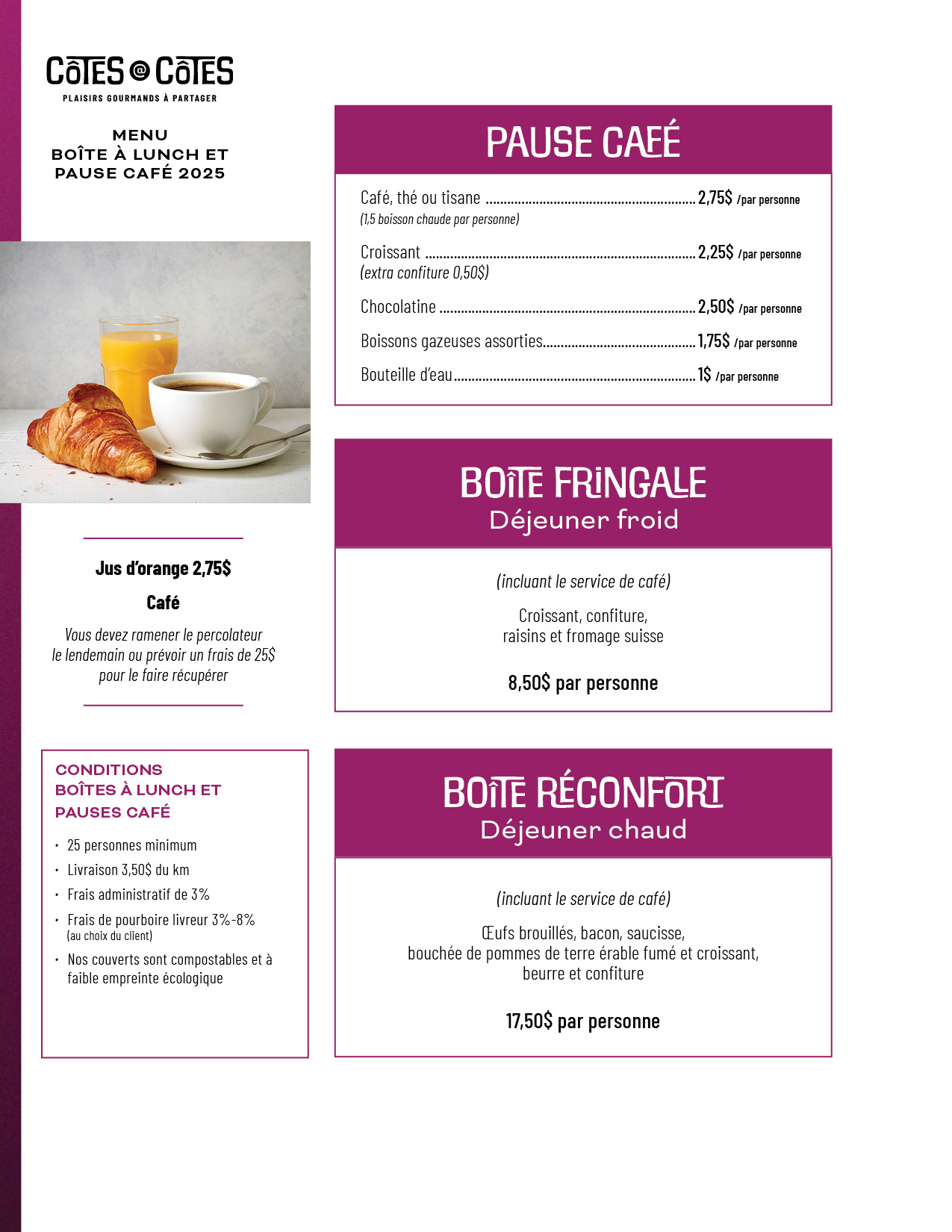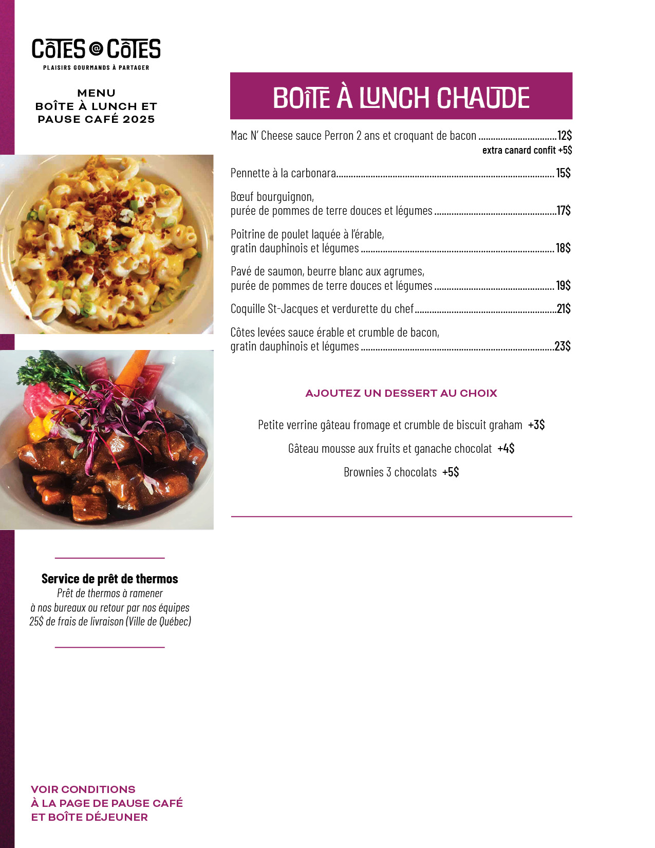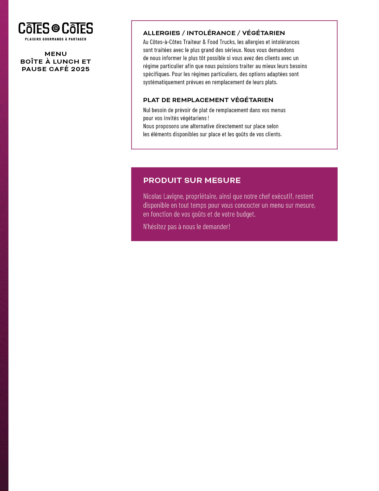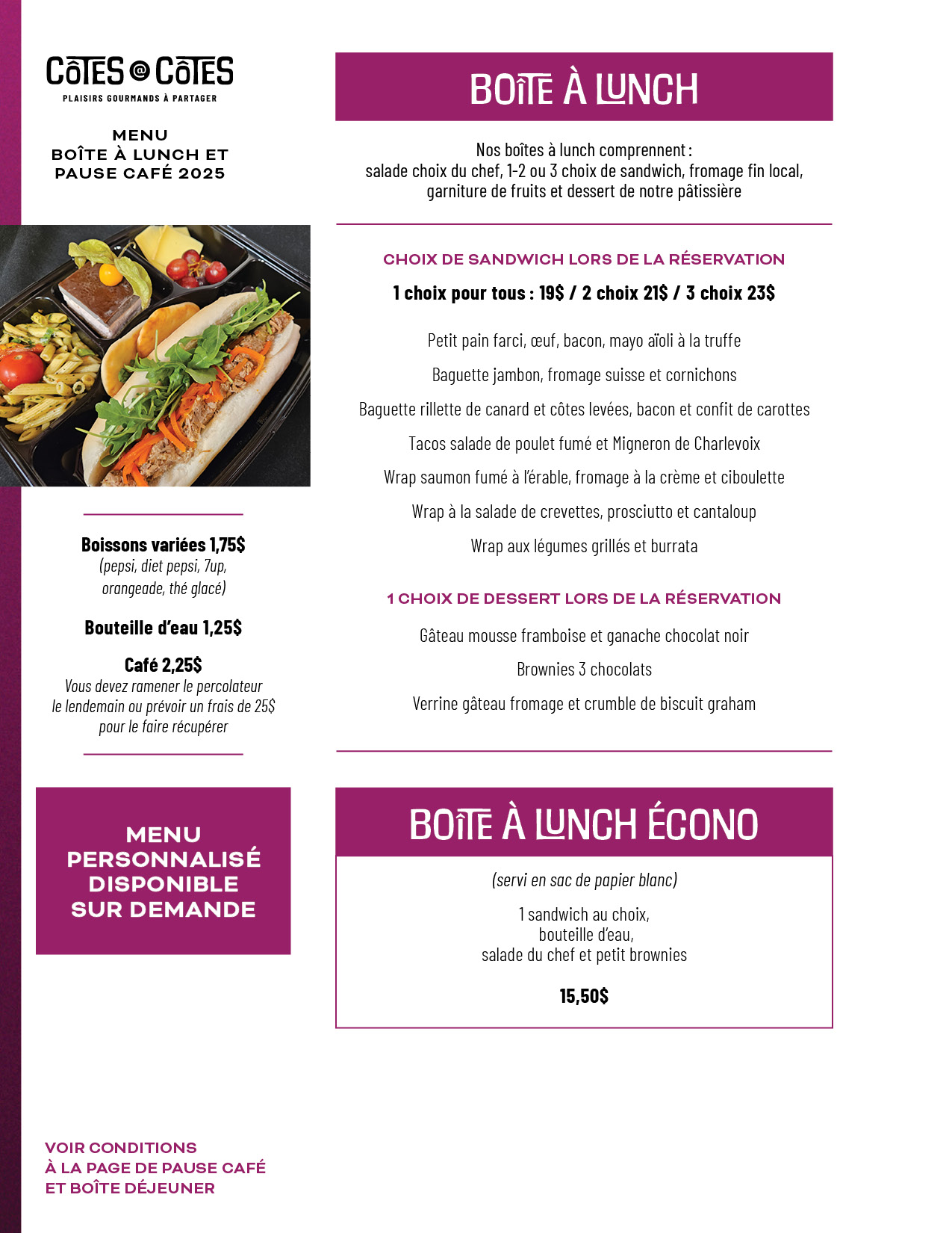Notre menu « Boîtes à lunch » vous fait saliver?Contactez notre équipe pour planifier un événement extraordinaire.