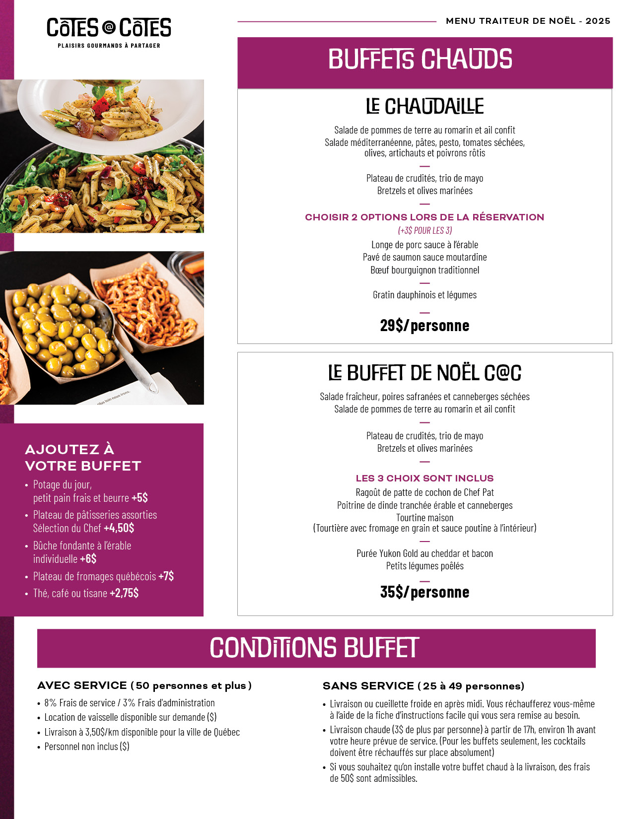 Notre menu « Traiteur des Fêtes » vous fait saliver?Contactez notre équipe pour planifier un événement extraordinaire.
